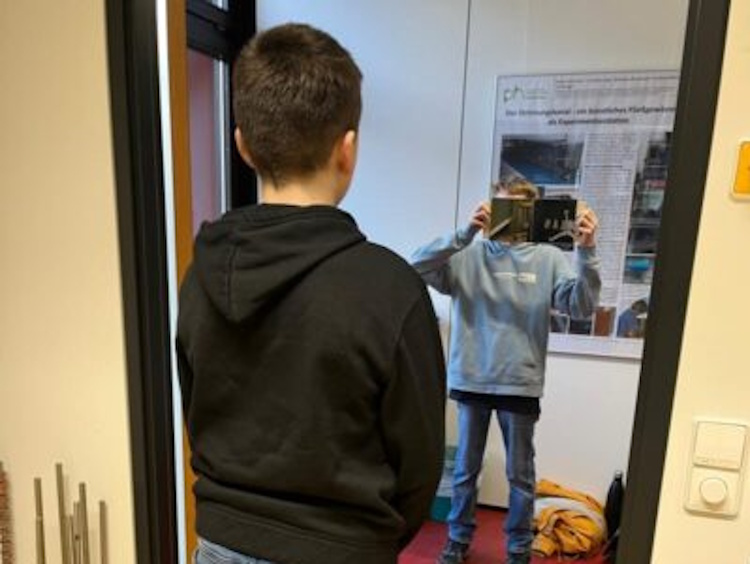 So beschäftigte sich die Klasse 7b bei ihrem Besuch im März 2025 mit der Strahlenoptik. Experimentiert wurde dabei mit Hohl- und Wölbspiegeln, wobei sich zum Beispiel die Frage stellte, wie groß ein Wölbspiegel sein müsste, um sich ganz darin sehen zu können. Aber auch Glasfaser, die heute zu den wichtigsten Konstruktionswerkstoffen zählt, wurde genauer unter die Lupe genommen.