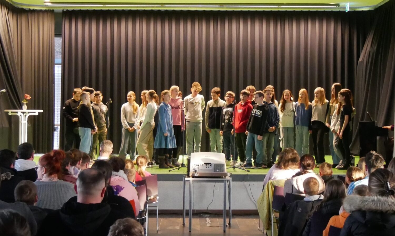 Ende Februar 2025 öffnete die Joß-Fritz-Realschule wieder ihre Türen, Klassenzimmer und Fachräume für alle interessierten Viertklässler und ihre Eltern. Eine Entscheidung für eine weiterführende Schule kann man schließlich nur fällen, wenn man die Schule erkunden konnte und festgestellt hat, dass man diese großartig findet. So füllte sich die Mensa mit vielen Kindern und Eltern und die Schülerinnen und Schüler, die das Rahmenprogramm gestalteten, hatten viele Zuschauer. Begrüßt wurden die Gäste mit einer Gesangseinlage der Klasse 6a und die Tanz-AG zeigte, wie kreativ man sich zu aktueller Popmusik bewegen kann.