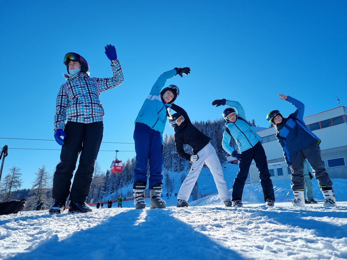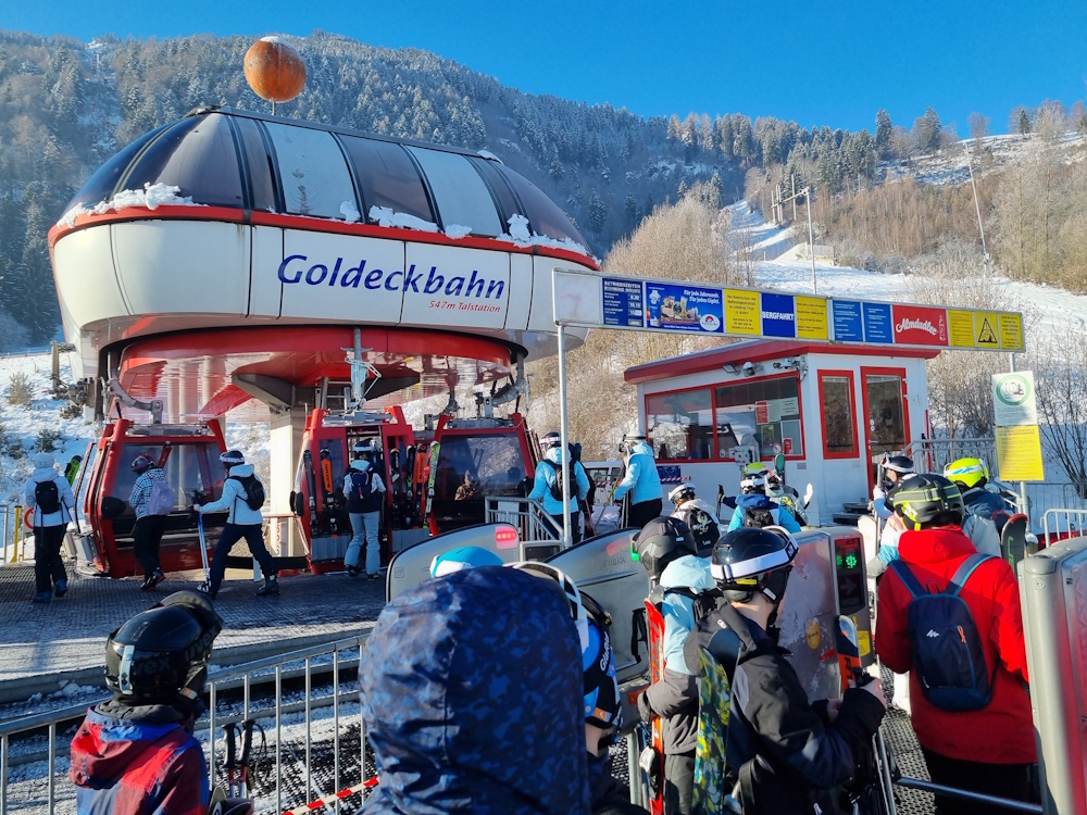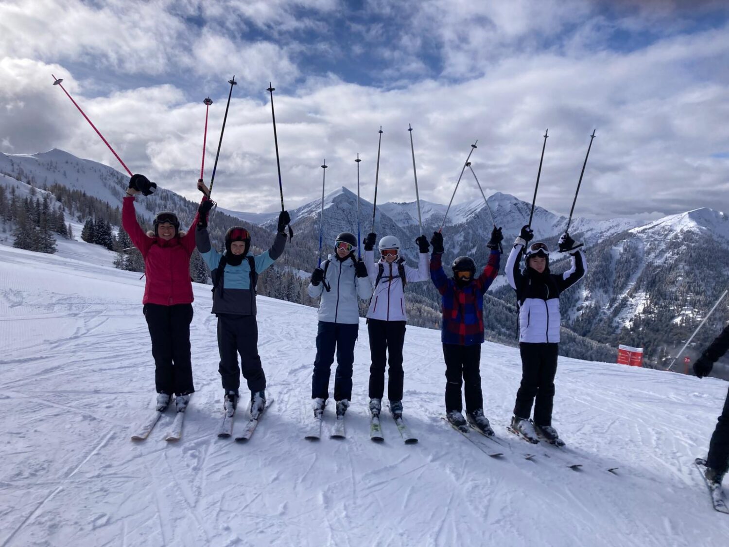 Die sanften und breiten Abfahrten erwiesen sich als ideales Übungsgelände – insbesondere, weil zwei Drittel der Teilnehmer zuvor noch nie auf Skiern gestanden hatten. Im Skikurs lernten sie schnell das sichere und kontrollierte Fahren an den Übungshängen. Schon am zweiten bzw. dritten Skitag meisterten sie gemeinsam mit der Fortgeschrittenengruppe die blauen und sogar roten Pisten am Goldeck – eine tolle Leistung!